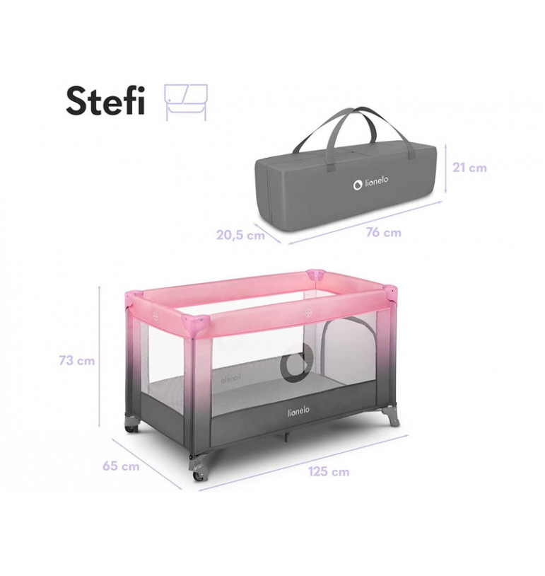 Le sac de transport protège le lit enfant des salissures. La poignée pratique facilite son portage de sorte que le lit parapluie Stefi convient aussi pour les voyages.