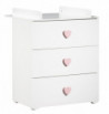 Commode à langer 3 tiroirs - Boutons coeur rose BASIC