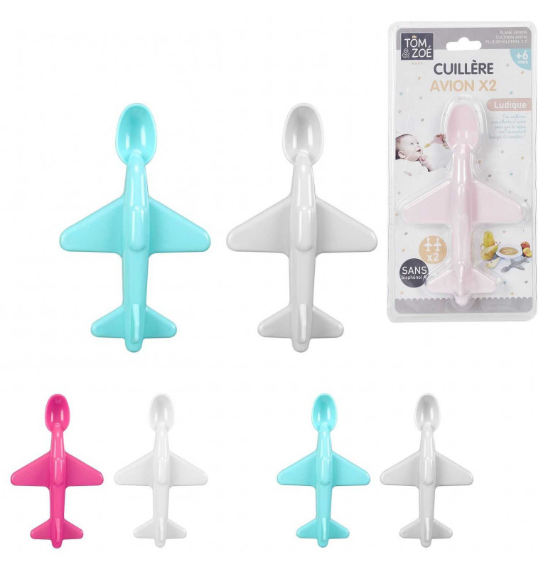 Faire manger bébé nest pas toujours chose aisée. Pour rendre ce moment de la journée plus ludique, choisissez ce lot de 2 cuillères TOM ET ZOE en forme davion. Elles existent en rose et blanc ainsi quen bleu et gris. Elles amuseront bébé et vous permettront de lui donner à manger plus facilement. De dimensions 10.5 x 17.5 x 6 cm, elles se glisseront facilement dans le tiroir de votre cuisine. Leur utilisation est adaptée dès lâge de 6 mois. Elles ne contiennent pas de bisphénol A.