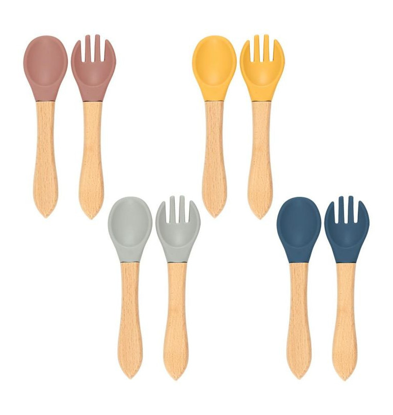 Découvrez le set de 2 couverts pour bébé en bois et silicone : Cuillère & Fourchette (1 à 3 ans)