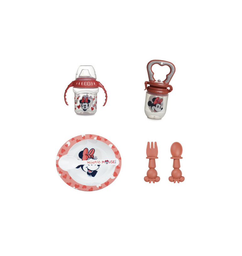 TOUT POUR LE REPAS DE BEBE : TASSE À BEC, SET 2 CUILLÈRES, BOL À VENTOUSE ET GRIGNOTEUSE Disney Minnie