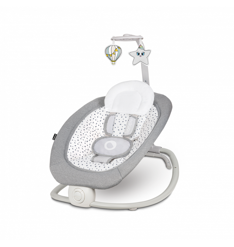 Confort et fonctionnalité. Un coussin doux détachable assure un appui pour la tête de lenfant. Grâce au blocage de bercement, la balancelle peut être transformée en transat pour bébé. Une garniture douce assure le confort au bébé dans chaque situation et, si nécessaire, il est possible de lenlever facilement et la laver dans une machine à laver traditionnelle.
