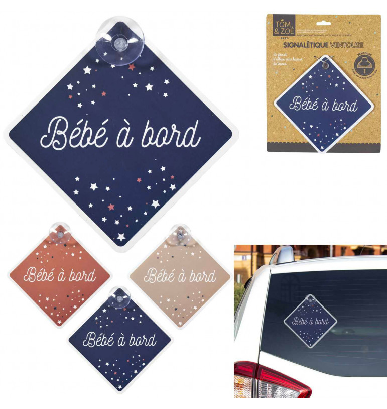 SIGNALETIQUE BEBE A BORD AVEC VENTOUSE ROSE BLEU O